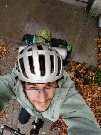 Vasárnap, október 26-án pakoltam fel csenevész testemet a kerékpárra. Hátul táskák, bennük pár apróság meg mifene, ami egy hétre kellhet. Csöpögött az eső, ezért esőkabátban indultam útnak. A túrázás egészen addig tűnt jó ötletnek, amíg fel nem emeltem mindkét lábam a talajról, és a saját egyensúlyomra bíztam a kerékpáromat. Az egész bicikli imbolygott. Ennek oka a váznak egy törött része volt. Egy elég fontos részé. Az alsó, ferdén állóé, ami összeköti a pedálokat a kormánnyal. Leegyszerűsítve. Igyekeztem némi ragasztószalaggal orvosolni a hibát, de az eredmény erősen korlátozott lett. A bicikli nem volt olyan, mint új korában, de elvitt a sarokig, majd el a következőig is. Folytathatnám, működött. Meg kellett kicsit feszíteni a karokat, mellőzni a felesleges duhajkodásokat, hirtelen kanyarokat, nem beszélve a gödrökről, kátyúkról.